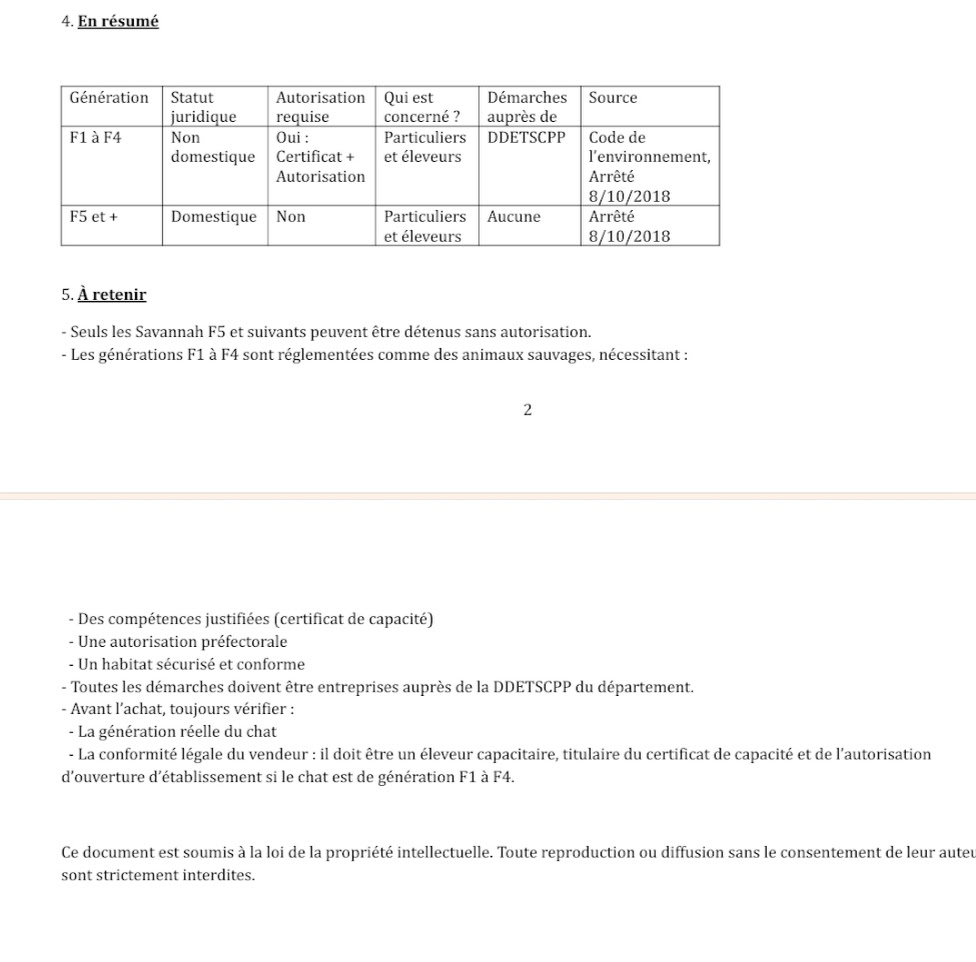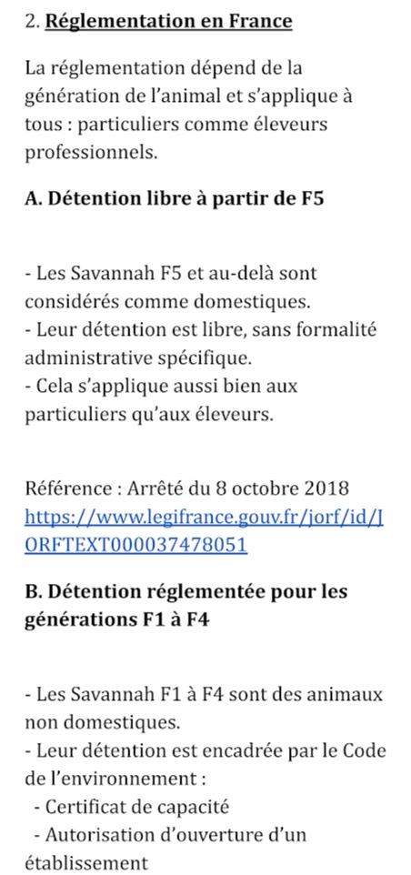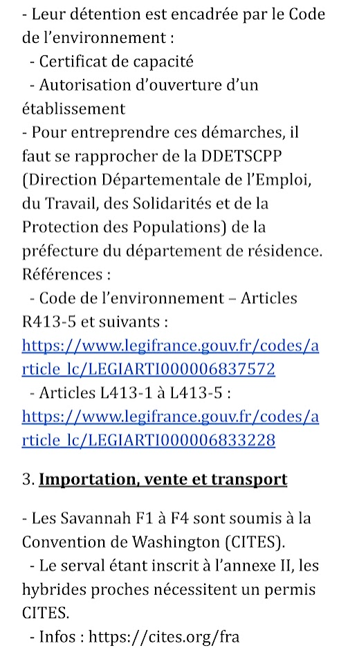 Cet arrêté a été rectifié, notamment sur la détention de Savannah hybrides en France (expérience requise et nombre d’heures pour obtenir le certificat de capacité et l’autorisation d’ouverture).